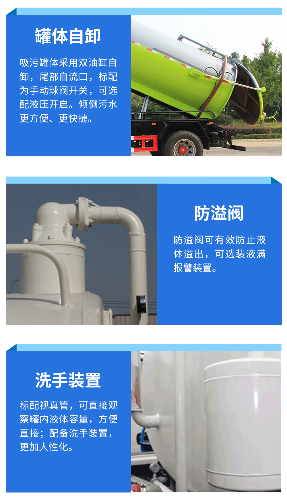 6. 罐体带举升自卸功能,尾部排污口可液压开启,带锁紧装置