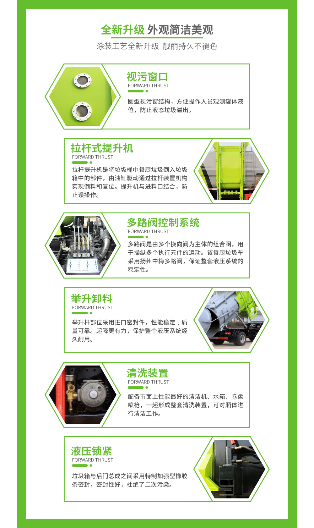 产品简介:1、左右侧面防护材料采用Q235B碳钢,连接方式采用焊接连接。后下部防护由专用装置代替,后下部防护离地高度(mm):470。2、ABS系统控制器型号/生产企业:CM4YL/广州瑞立科密汽车电子股份有限公司。3、专用装置:侧装垃圾桶提升装置,主要用于餐厨垃圾收集及转运。